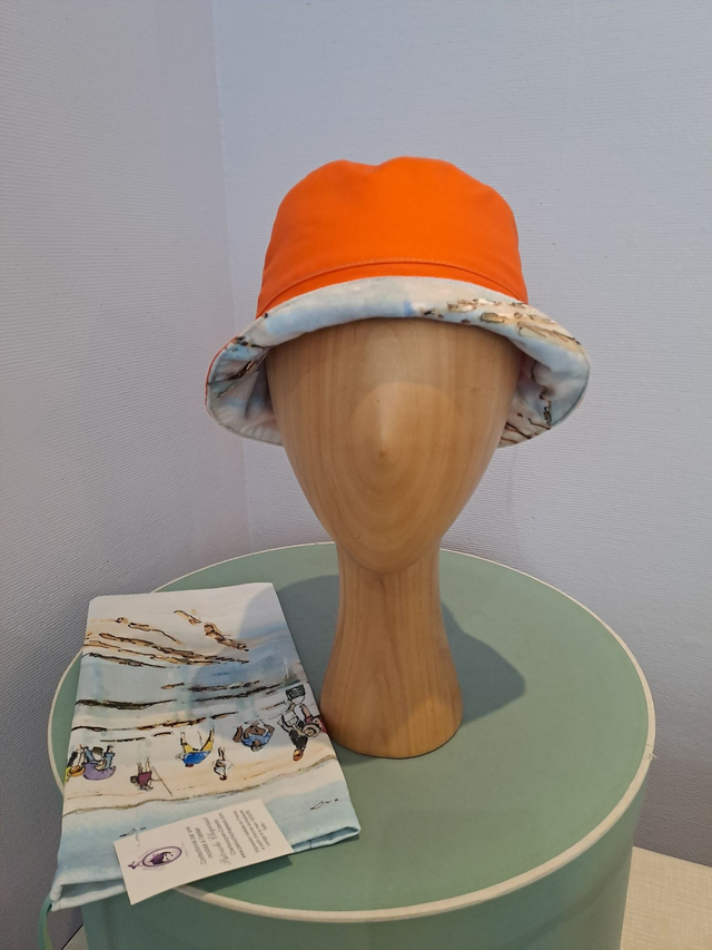 Bob de pluie Aquarelle "Pêche à pied" intérieur gabardine orange