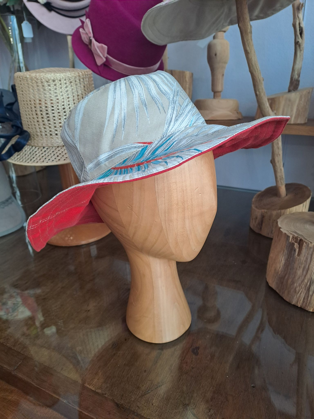Capeline de soleil réversible, une face tissu coton imprimé floral