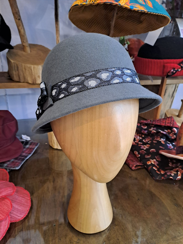 Cloche rétro en feutre de laine mérinos grise