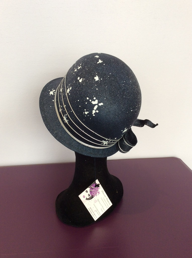Modèle "Cloche 1920" : paille parasisal bleu marine, noeud stylisé