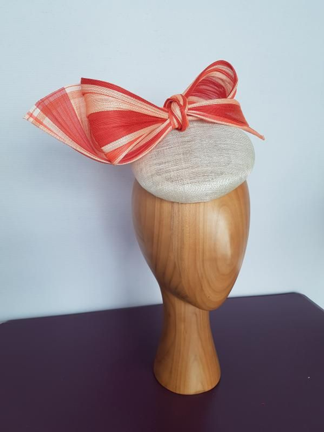 Bibi de sisal écru, rehaussé d'un nœud de buntal orangé/écru