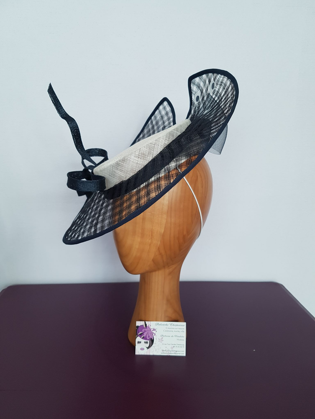 Modèle "Salomé", bibi en sisal blanc, voilette en sisal grillage marine